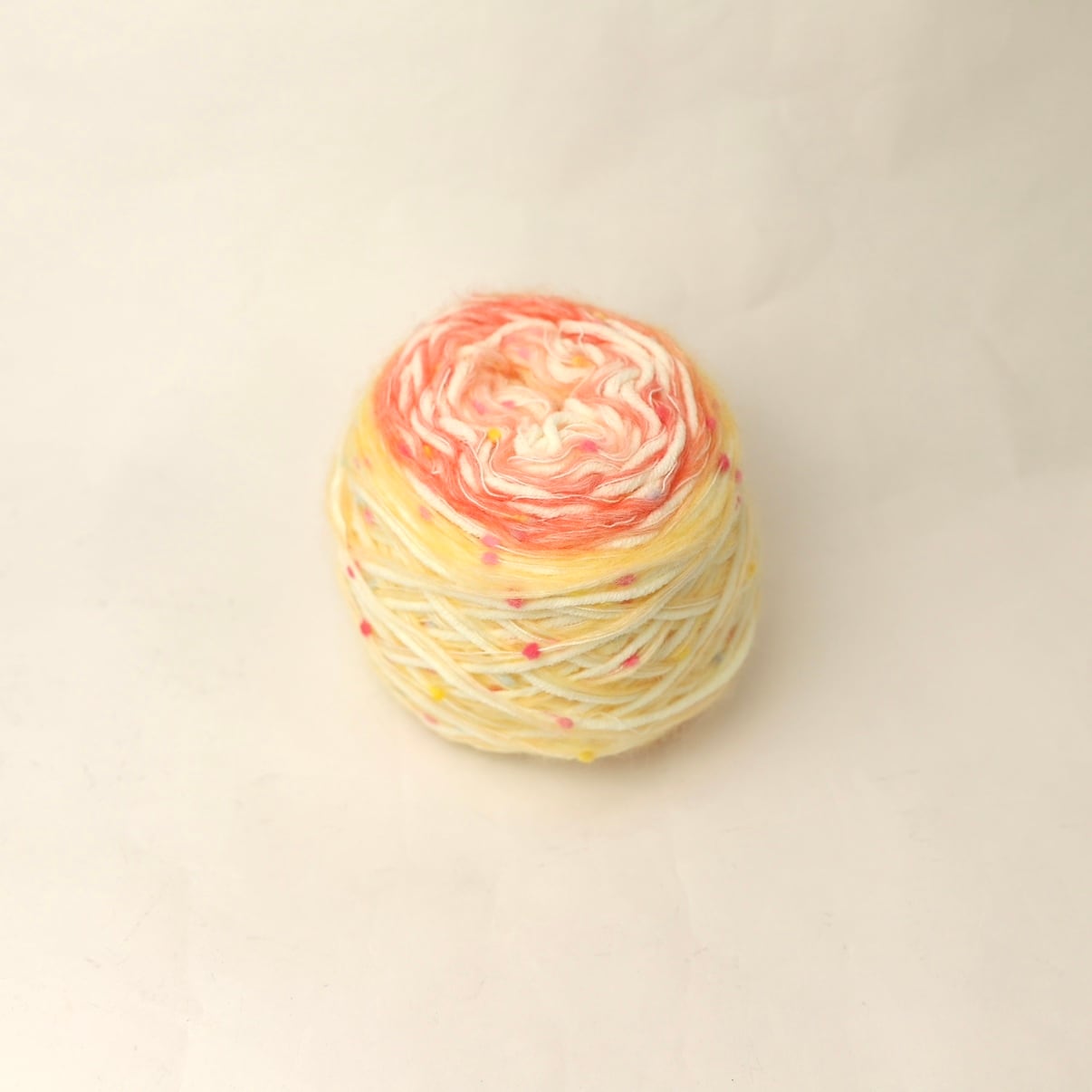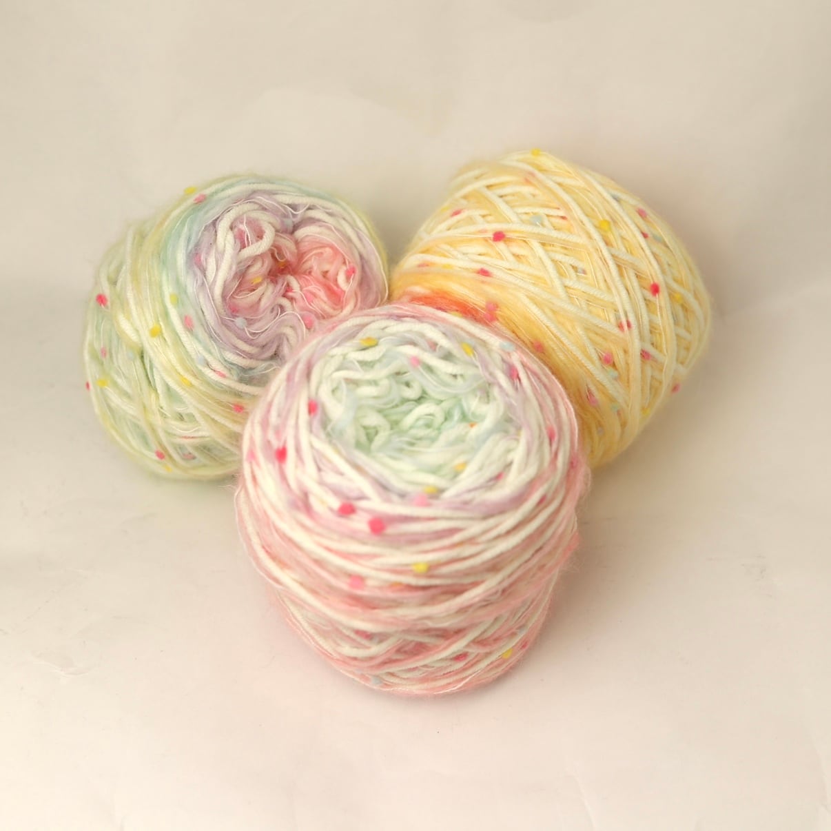 ふんわりとした質感のキャンディーカラーネップは、ポップで楽しいカラフルなネップが特徴の特別な糸です。様々な色がちりばめられており、編むだけで作品に遊び心と明るさを加えます。