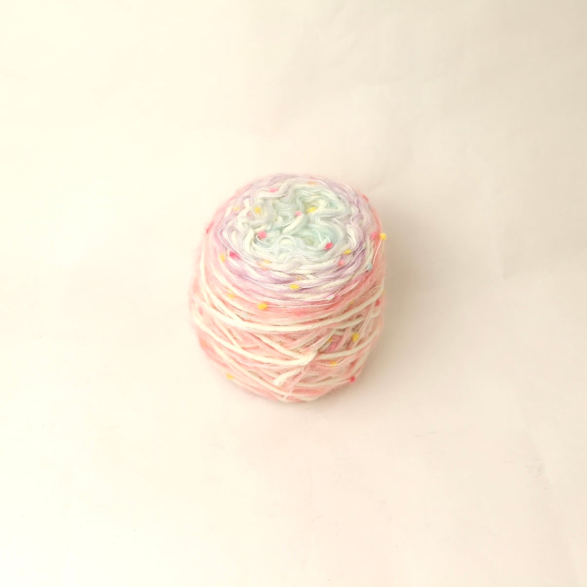 しっとりとした手触りと、愛らしい色合いの組み合わせが魅力。ナチュラルからキュートなアイテムまで幅広く対応でき、ニット小物やアクセサリー、アート作品の材料としてもぴったりな一品です。